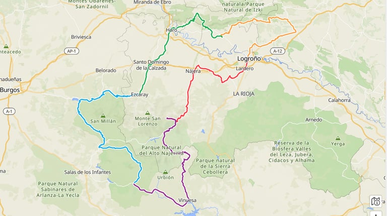 ¡Prepárate para la primera etapa de una aventura inolvidable! Salimos de la vibrante Logroño para adentrarnos en el corazón de la Sierra de la Demanda. Este es un recorrido que te hará sentir la grandeza de la naturaleza riojana. Pedalearás por las históricas tierras de Daroca de Rioja y Nájera, cuna de reyes y monasterios, antes de que el paisaje comience a transformarse. La ruta te llevará a través de los bosques que rodean Anguiano, y desde allí, la ascensión final hacia el Monasterio de Valvanera será tu gran desafío. Este lugar sagrado, escondido entre montañas, te ofrecerá una paz y unas vistas que te dejarán sin aliento.